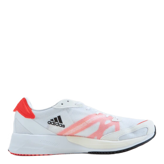 ” Kevyet juoksukengät, jotka on valmistettu nopeutta varten. Intervallit, tempojuoksut ja kylmät aamuharjoitukset kannattivat. Pääsit lähtöviivalle. Enää ei ole enää jäljellä kuin ottaa varusteet käyttöön ja ajaa matka näissä Adidaksen juoksukengissä. Niiden verkkopäällinen on niin kevyt, että sitä tuskin tunnet kurssilla. Lightstrike-pehmuste antaa reagoivan ja näppärän ajon. Tämä tuote on valmistettu Primegreen-sarjasta, joka on sarja tehokkaita kierrätysmateriaaleja. Päällisestä 50 % on kierrätysmateriaalia. Ei neitseellistä polyesteriä.