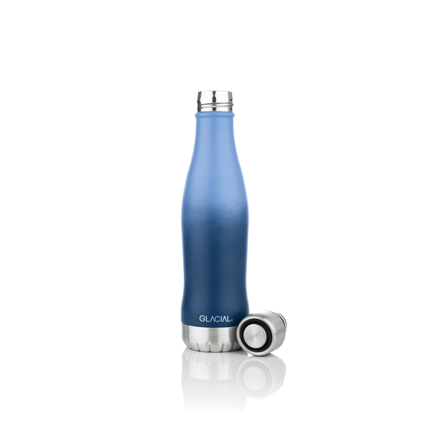 GLACIAL-vesipullo on valmistettu ruostumattomasta teräksestä ja sitä voidaan käyttää sekä kylmille että kuumille juomille. Pulloa on saatavilla eri väreissä ja malleissa ja se on ympäristöystävällinen, kestävä ja erinomainen vaihtoehto muovipulloille.