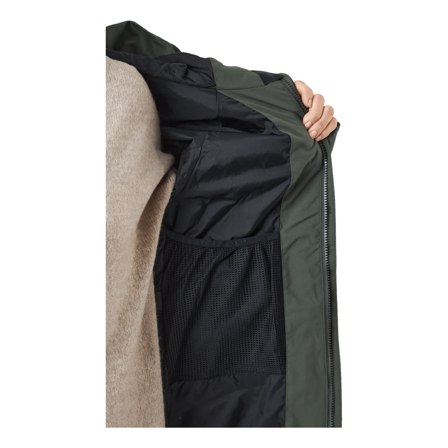Parkassa on mattapintainen viimeistely, neljä vetoketjullista etutaskua ja kaksi sisätaskua, joista yksi vetoketjullinen. Säädettävä kiinteä huppu ja korkea kaulus. Hihansuut ja vyötärö ovat säädettävät. Kaksisuuntainen vetoketju edessä ilmanvaihtoa varten, suojaava myrskyläppä ja huomaamaton kiinnitys. Painettu logo heijastavaa materiaalia ja teipatut yksityiskohdat takana. Vuori on värjätty Solution Dye -värjäystekniikalla, joka säästää jopa 80 % vettä verrattuna perinteisesti värjättyyn polyesteri/polyamidikankaaseen. PFC-vapaa vettä hylkivä viimeistely.
