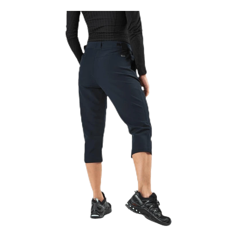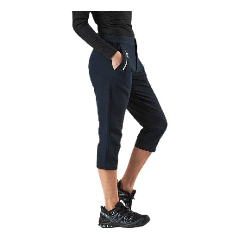 ¾ -mittaiset housut, jotka on valmistettu Stretchlite -materiaalistamme, joka on yhdistelmä joustavaa elastaania ja polyesteriä, joka maksimoi liikkuvuutesi. Materiaali on valmistettu aktiiviseen liikkumiseen ja housut soveltuvatkin kaikenlaiseen liikuntaan, kävelyistä golf-kentille. Vyötäröllä on tarranauhalla varustettu säätö. Housuissa on kaksi avointa taskua vyötäröllä sekä yksi vetoketjullinen etupuolella, jossa säilytät välttämättömät tarvikkeet, kuten puhelimen ja avaimet.