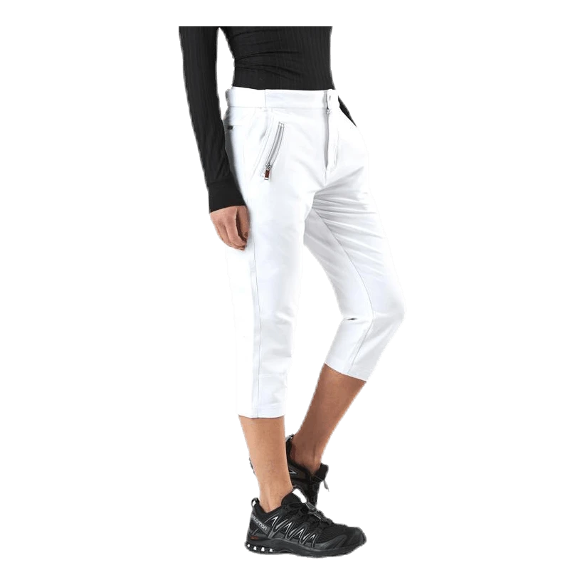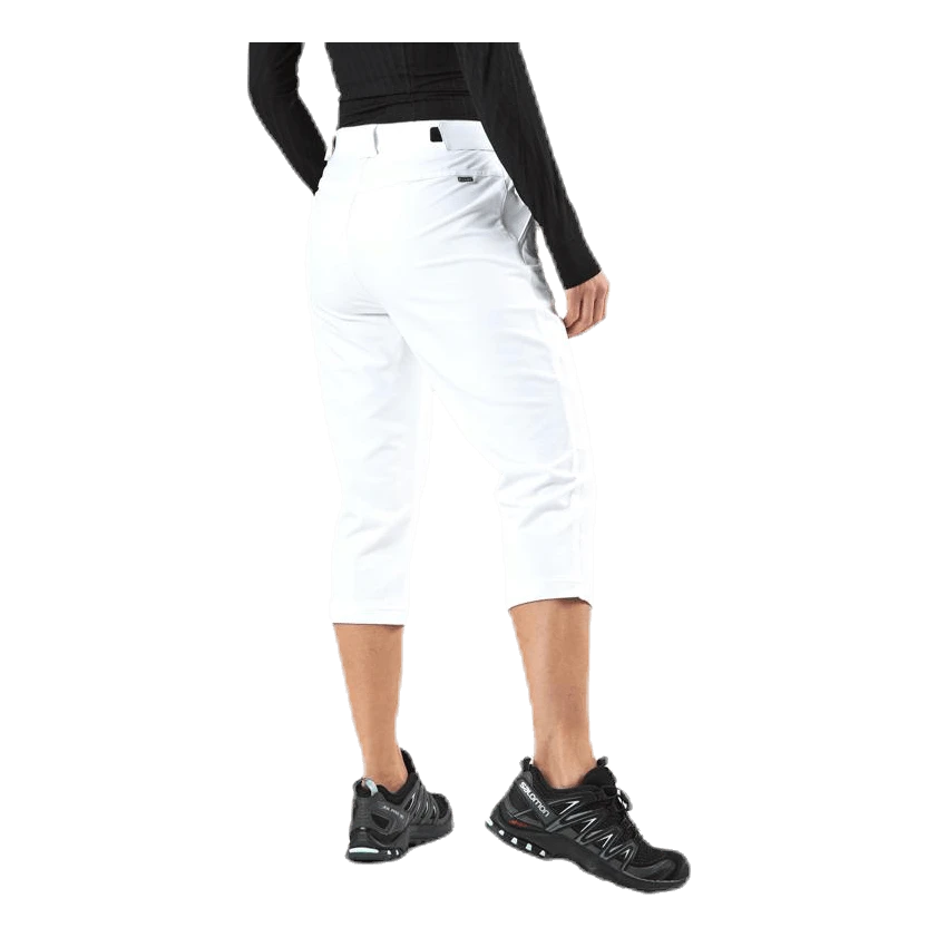 ¾ -mittaiset housut, jotka on valmistettu Stretchlite -materiaalistamme, joka on yhdistelmä joustavaa elastaania ja polyesteriä, joka maksimoi liikkuvuutesi. Materiaali on valmistettu aktiiviseen liikkumiseen ja housut soveltuvatkin kaikenlaiseen liikuntaan, kävelyistä golf-kentille. Vyötäröllä on tarranauhalla varustettu säätö. Housuissa on kaksi avointa taskua vyötäröllä sekä yksi vetoketjullinen etupuolella, jossa säilytät välttämättömät tarvikkeet, kuten puhelimen ja avaimet.